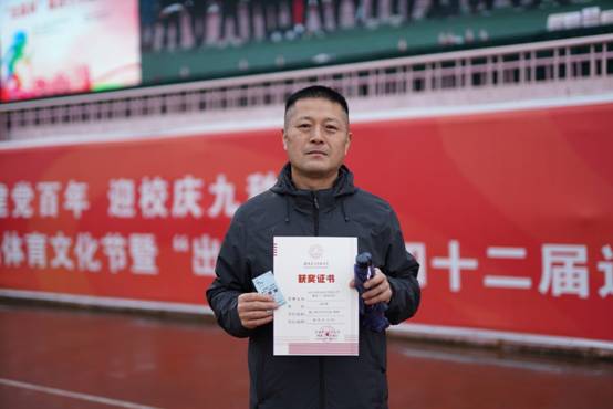 教工男子中年甲组100米第一名 张锐