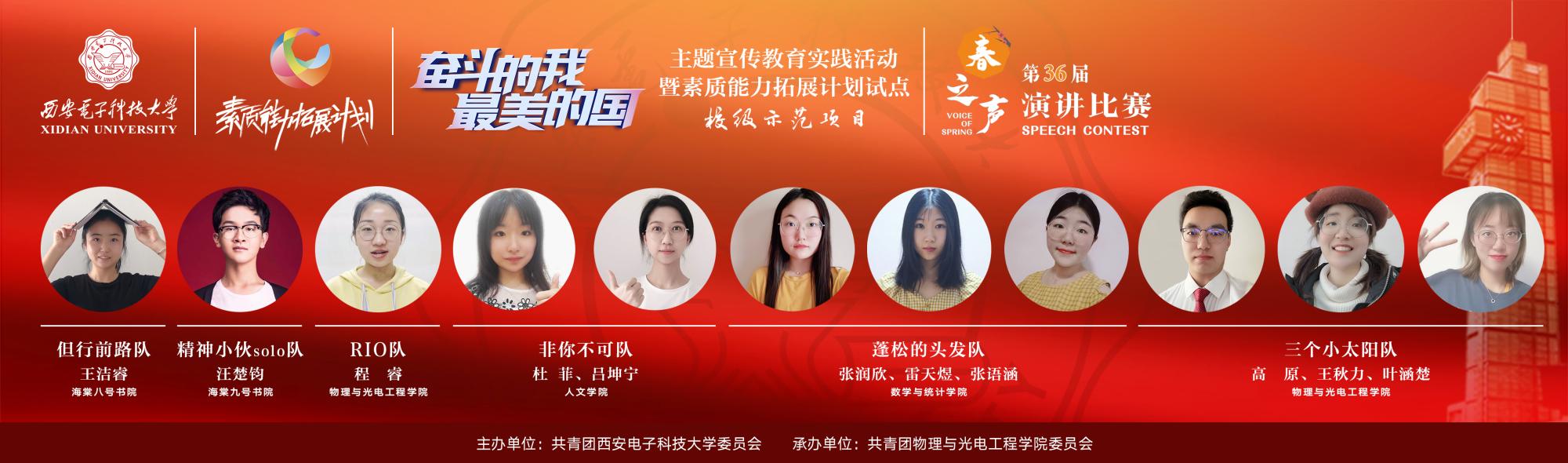 比赛现场激昂热烈,“精神小伙solo”队着眼新时代背景,发出了“以青春之名,奋进新时代”的呐喊;“非你不可”队从“国民女神”李兰娟院士的无畏奉献精神切入,发起了“战疫路上,让我们一起负重前行”的号召;“三个小太阳”队讲述了抗“疫”路上“平凡人”的“平凡事”,谈到“再平凡的骨头里也有江河”;“蓬松的头发”队诗颂《我的祖国》,表达了西电青年对祖国的深情热爱;“RIO”队从国家繁荣与民族团结两个方面,分享了自己对爱国主义思想的理解与感悟;“但行前路”队聚焦抗“疫”中的“90”后力量,展现了新时代青年的使命与担当。