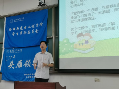首先,李睿学长向所有新一届领航员介绍了领航工作任务和注意事项,重点结合自身领航经历分享了领航感受,为新一届领航学长们提供了宝贵经验。他谈到:我们应该加强与学弟学妹之间的联系,协助辅导员老师帮助新生同学们解决其在学习、生活以及学业发展等过程中遇到的问题,引导新生快速适应老员工活。