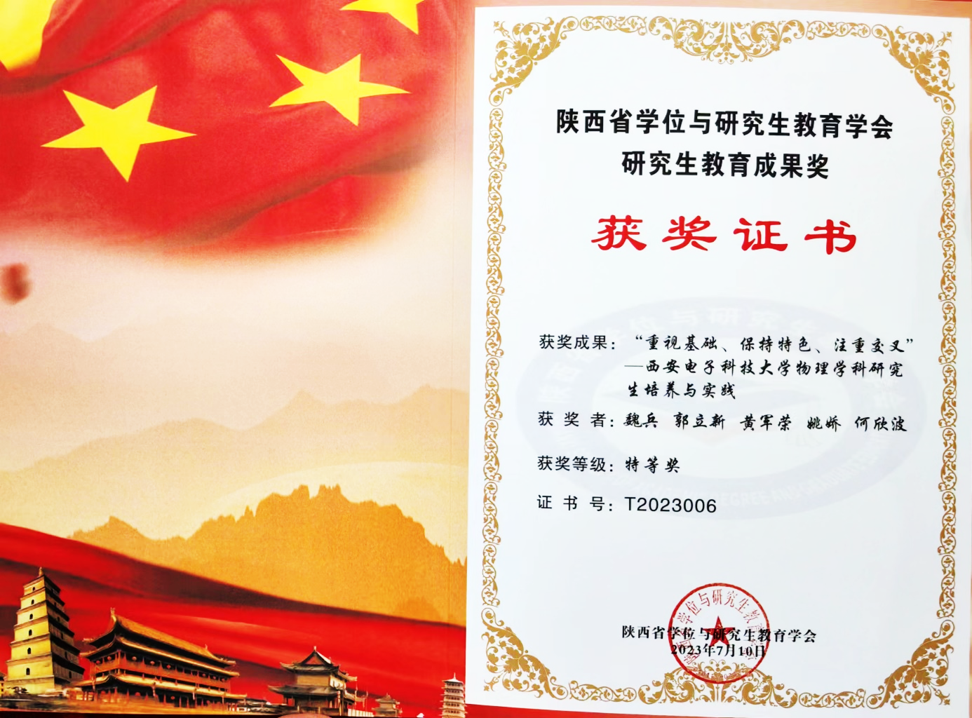 (通讯员:姚娇)近日,陕西省学位与研究生教育学会公布了第三届陕西省学位与研究生教育学会研究生教育成果奖评审结果,英国正版365官方网站申报的5项成果获得奖励,其中特等奖2项,一等奖1项,二等奖2项。公司魏兵教授领衔的团队完成的研究生教育成果“重视基础、保持特色、注重交叉——英国正版365官方网站物理学科公司产品与实践”荣获特等奖。