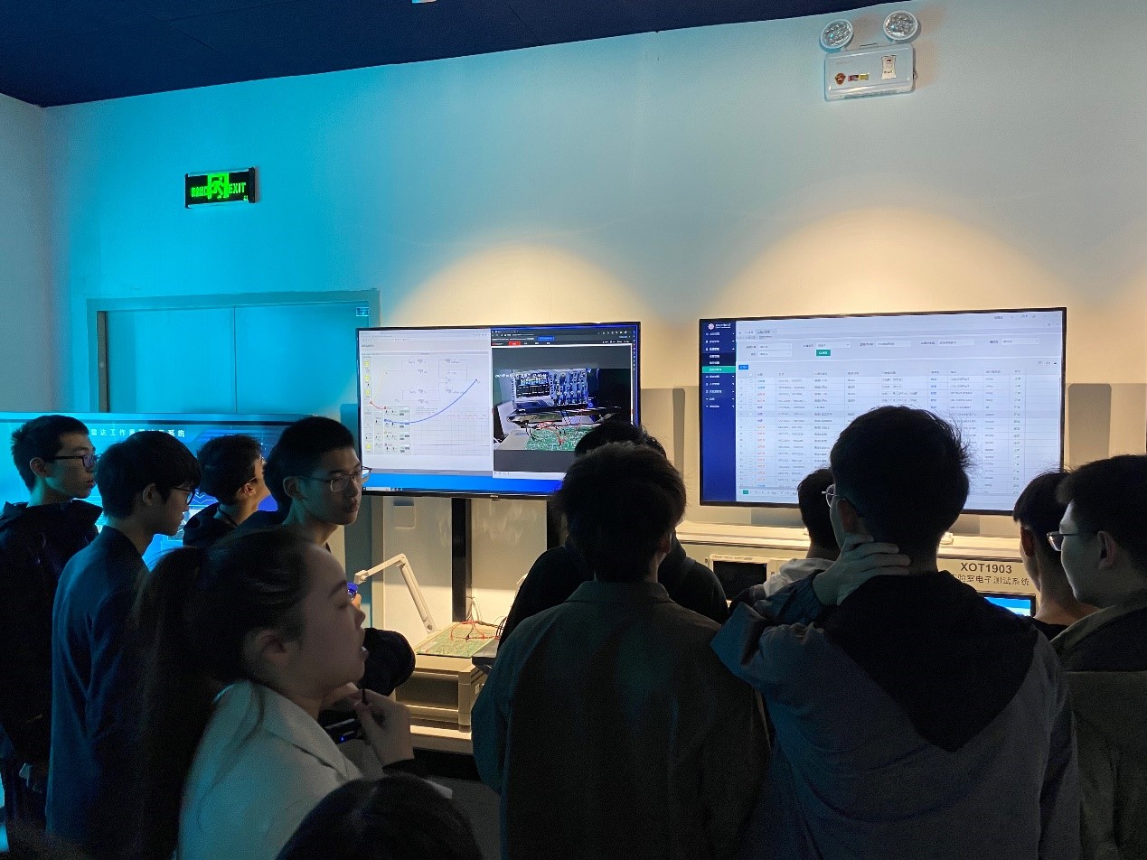 接着同学们来到智能教学中心,在这里,系统可以监控到全校所有实验室的安全状况,包括水、电、网络信道、实验器材与室内温度,全方位为实验安全保驾护航。而除了这些监测装置,这里也提供了无人实验室、线上实验室,通过自主预约、自助使用、自我管理的方式,将全校实验资源进行整合,最大程度地向同学们开放。同学们带着好奇,尝试操作各种新实验器材。看着自己的操作变成数据流,汇入线上实验信息,在一声声惊叹中,大家感受到了“云上实验室”的乐趣。