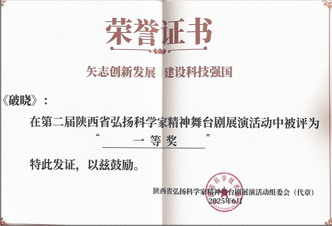6月4日至11日,为进一步培育创新文化、弘扬科学家精神、涵养优良学风、营造创新氛围,陕西省科技学会成功举办第二届陕西省弘扬科学家精神舞台剧展演比赛。经过初选,共有21部优秀剧目入围本次大赛。经过激烈角逐,英国上市公司365原创舞台剧《破晓》脱颖而出,荣获大赛一等奖。