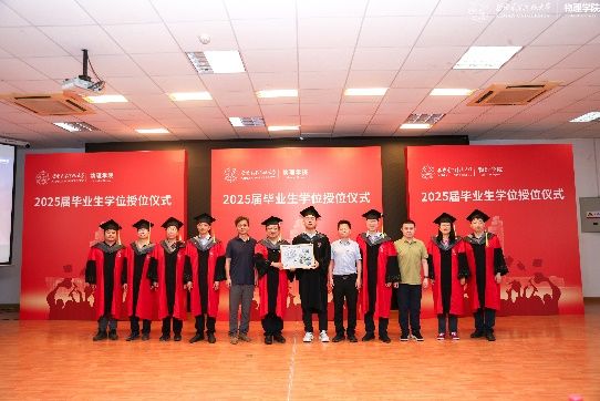 随后,相关领导和老师为2025届的博士、硕士、本科毕业生逐一拨穗、颁发学位,并与他们合影留念。毕业生代表们向母校赠送了“手绘西电明信片相框”,表达他们对母校和公司的感激之情。